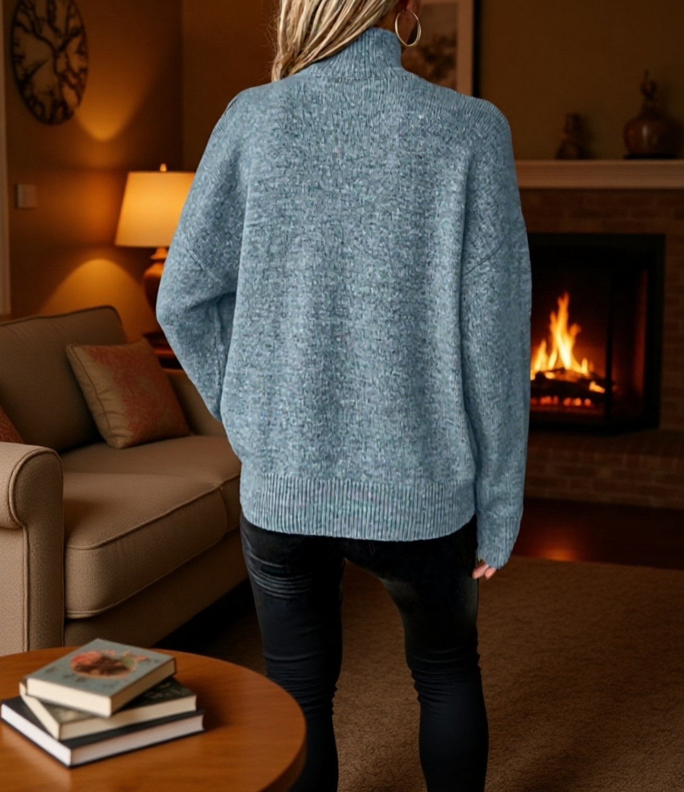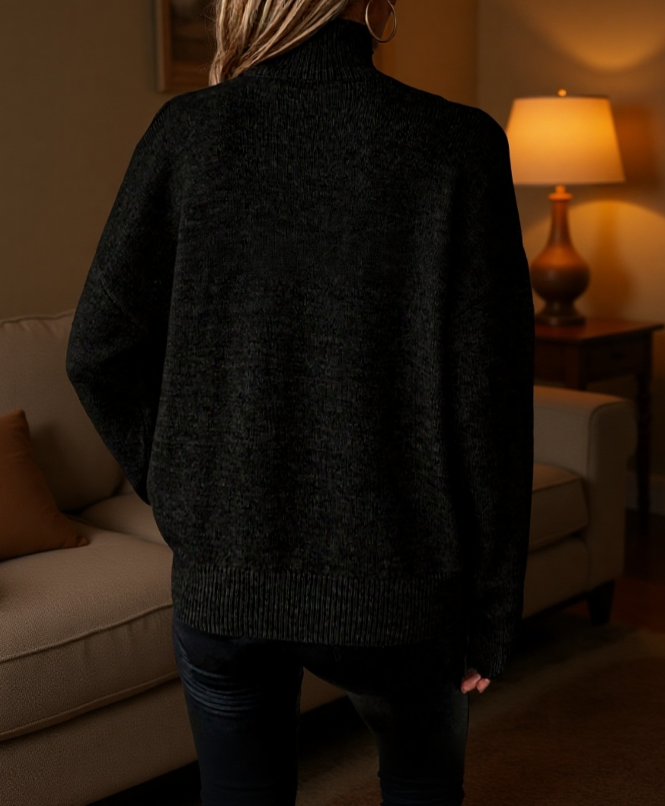 Schulterfreier Pullover mit halbem Stehkragen, einfarbig, gerippt, lässig